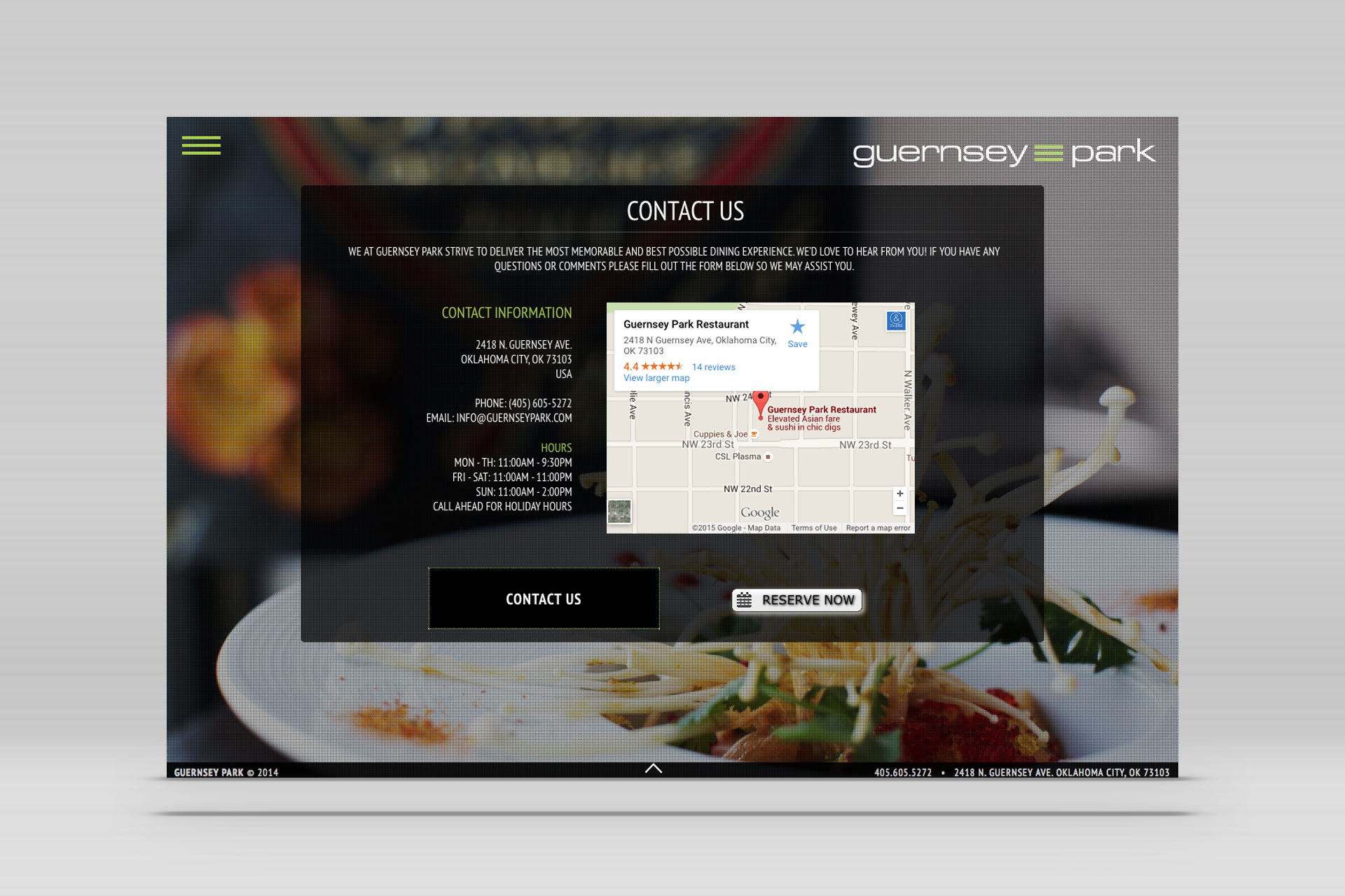 The Guernsey Park site was built as an adaptive site allowing a completely customized experience for mobile users. S twin site was also built for a second restaurant Covell Park.