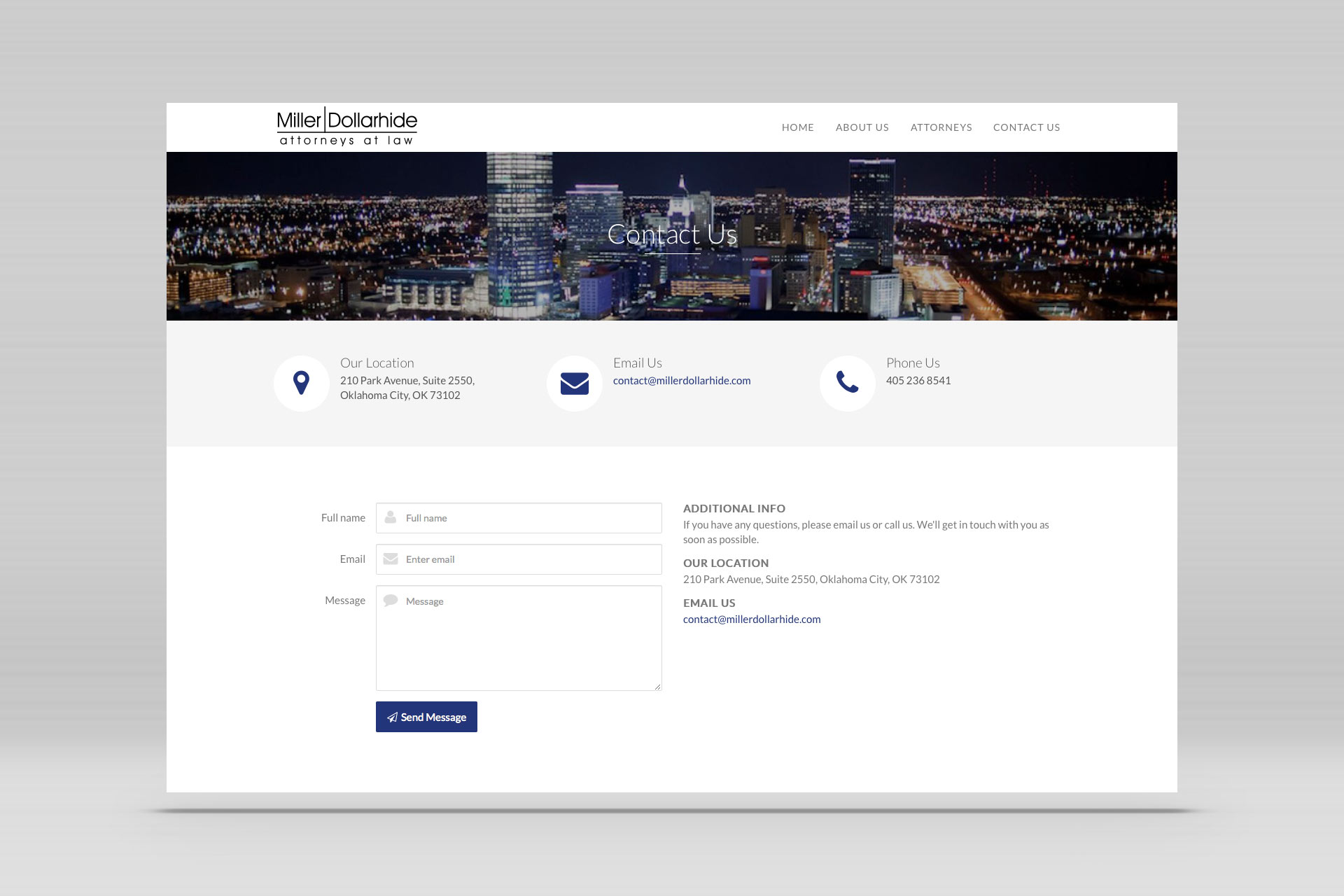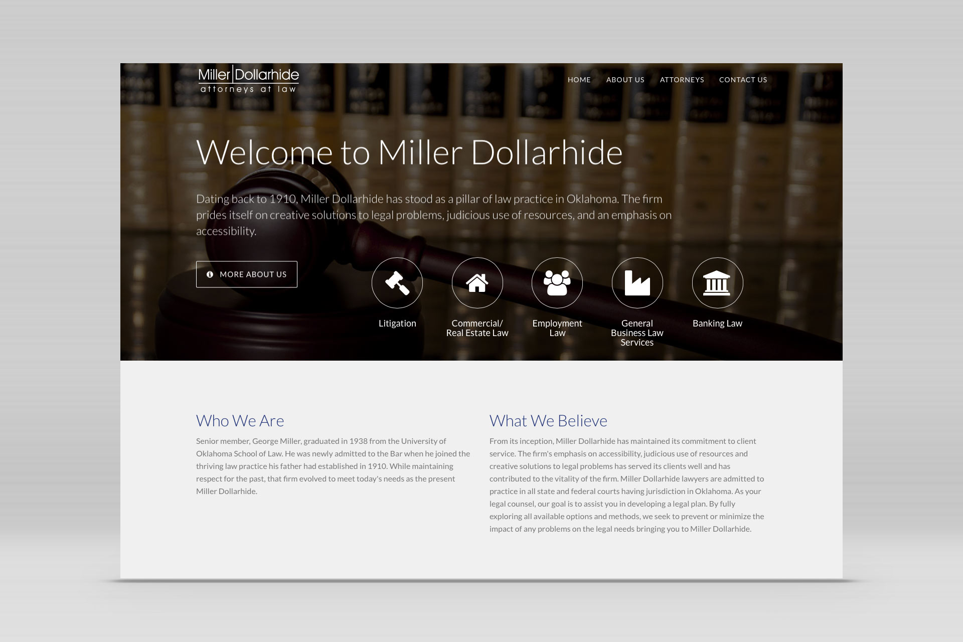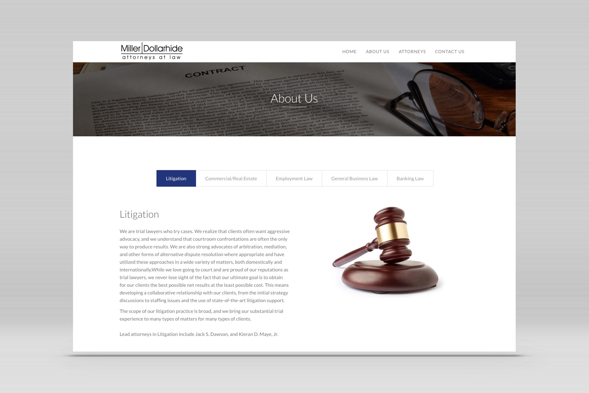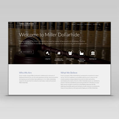 The Miller Dollarhide site features easy to navigate pages featuring law practice areas, as well as attorney bios that allow quick connections to be made via direct e-mail to each.